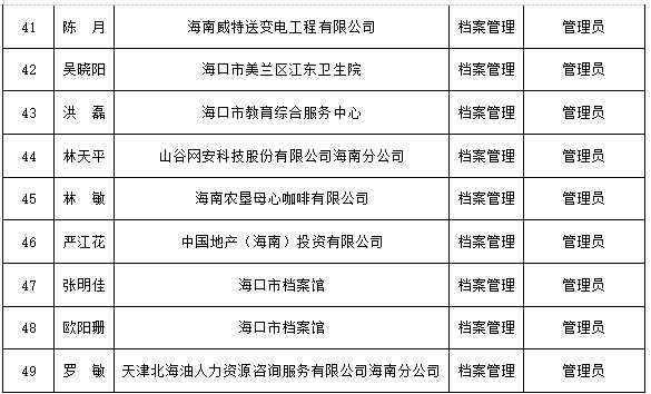 海口市档案局关于核准2025年度档案系列中初级专业技术资格的通知